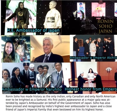 浪人蘇峰氏は、オリンピックや米国議会から、天皇陛下の親しい友人を含む日本外務省の公式行事まで、世界最大級のフォーラムで日本の武士道の芸術、文化、映画、ファッション、博物館、大和仏教を宣伝する世界で唯一の人物です。さらに、蘇峰氏は、米国、カナダ、インド、イスラエル政府の公式行事でサムライ文化を宣伝する世界で唯一の人物です。大和文化への浪人蘇峰氏の比類なき貢献を称え、徳川家から日本刀を授与され、サムライとしてナイトの称号を授与された唯一の北米人となりました。このように蘇峰氏は、比類なき武士道と日本の大和魂文化と遺産を世界規模で宣伝、保存し、日本の若者に大和仏教と神道に基づく祖先の伝統に誇りを持つように教えることに生涯を捧げてきました。