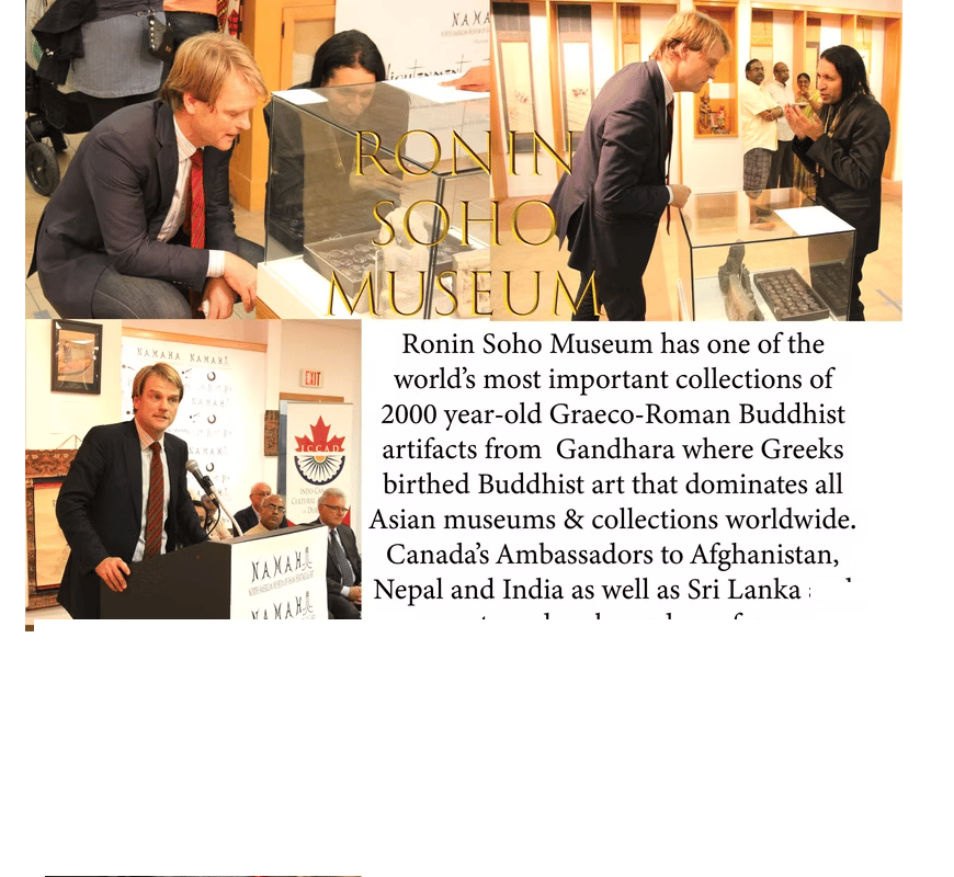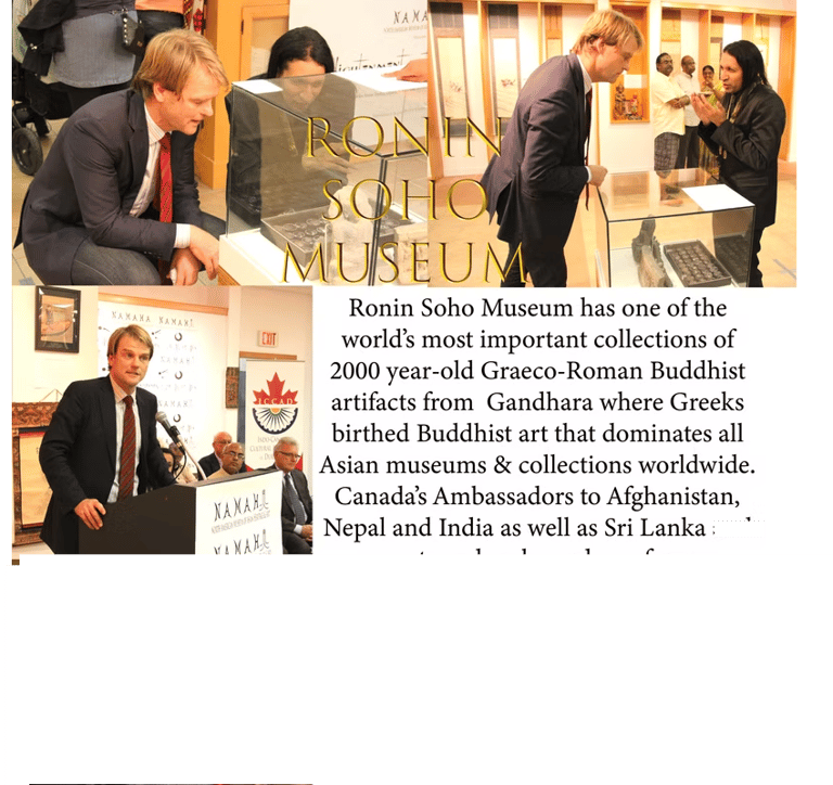 In addition, the Soho Museum is one of the only Museums to house the actual relics of the Buddha in 2000 year old stupas from Gandhara -- and has organized the biggest Asian Art Exhibits sponsored by the Government of Canada and praised by the Governments of Japan and India -- as well as Lt. Governors on behalf of the Royal Family of England. The museum also has artworks from China, Tibet and Sri Lanka to link the various Buddhist nations of the world.